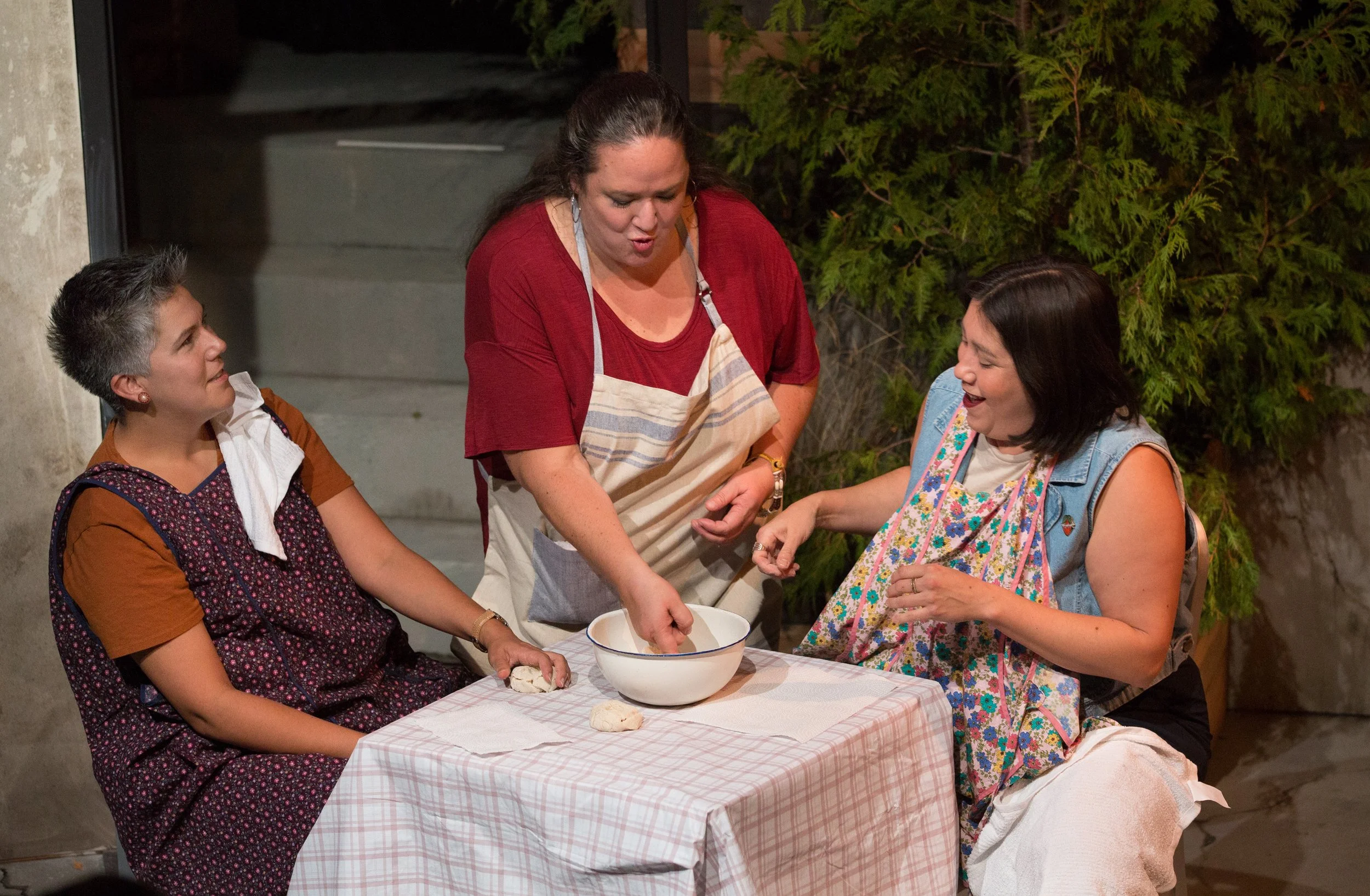 Ange is Kanien'kehá:ka from Kahnawà :ke, living and working across disciplines in Toronto. Her extensive history of theatrical co-creation, Indigenous context generation, wearable sculpture and experimental music merge toward performances that are image first and rhythm forward. She writes, directs, and co-designs large scale, multi-form projects, creating workshops, installations, art films, and publications in tandem with her work, including the Talking Treaties suite (Jumblies Theatre + Arts). 1400-1700 pottery patterns are at the heart of her new work Carrying Patterns and related productions she’d directed including Stone and Bone Spectacular (Centaur Theatre), Visibly Iroquoian (Canadian Centre for Architecture), as curator of the Highland Creek Mural (Street Art Toronto), and as generative content at Concordia Theatre. She’s performed in My Sister’s Rage (Bonnel/Tarragon, TO), Material Witness (SpiderWoman Theatre/Aanmitaagzi), and on major stages in art endeavours including ZlatekaSa (Chacon/ Whitney Museum, Smithsonian NMAI, Holland Fest) and Electric Prop and Hum Freestyle Variations (Hupfield / National Arts Centre) and with Yamantaka//Sonic Titan.